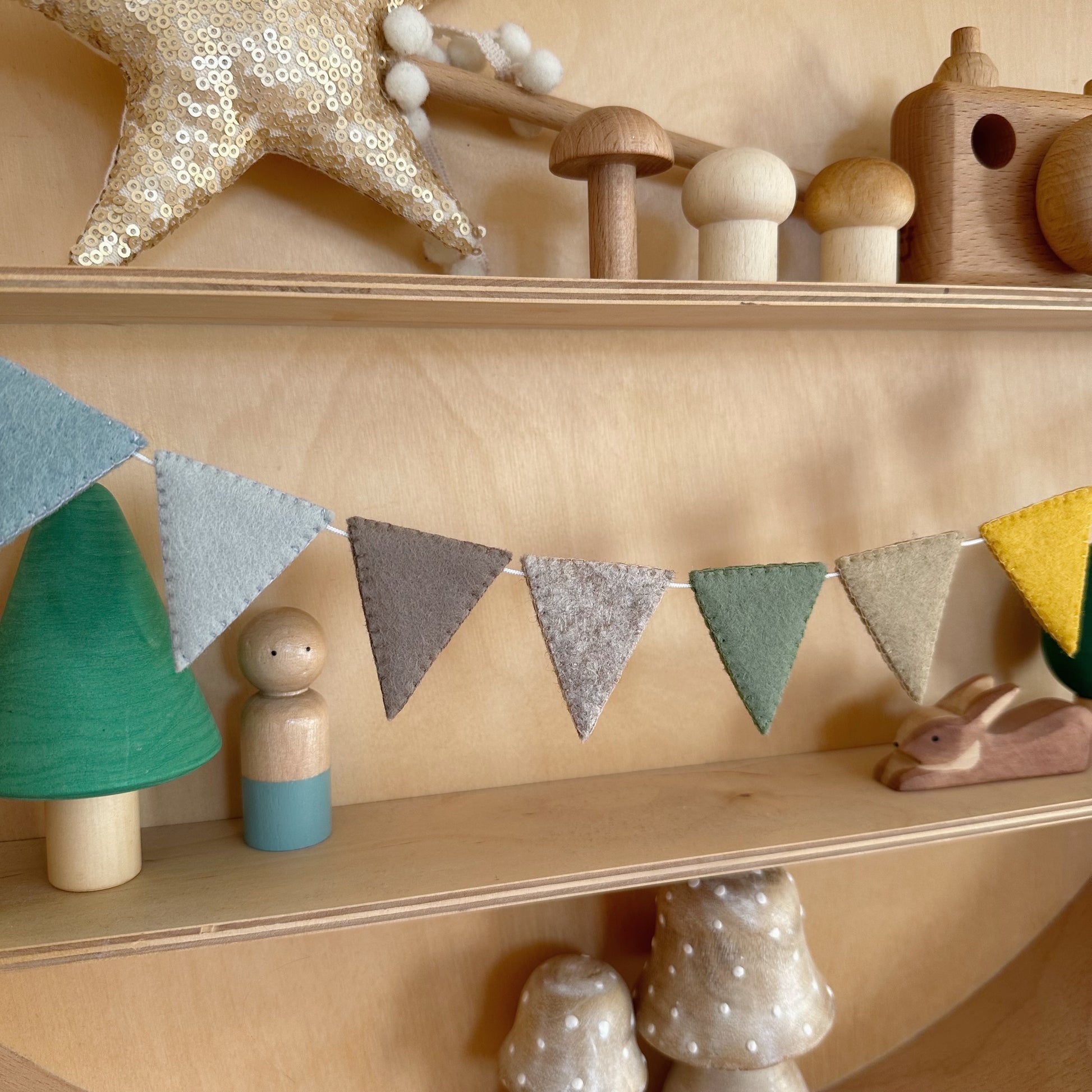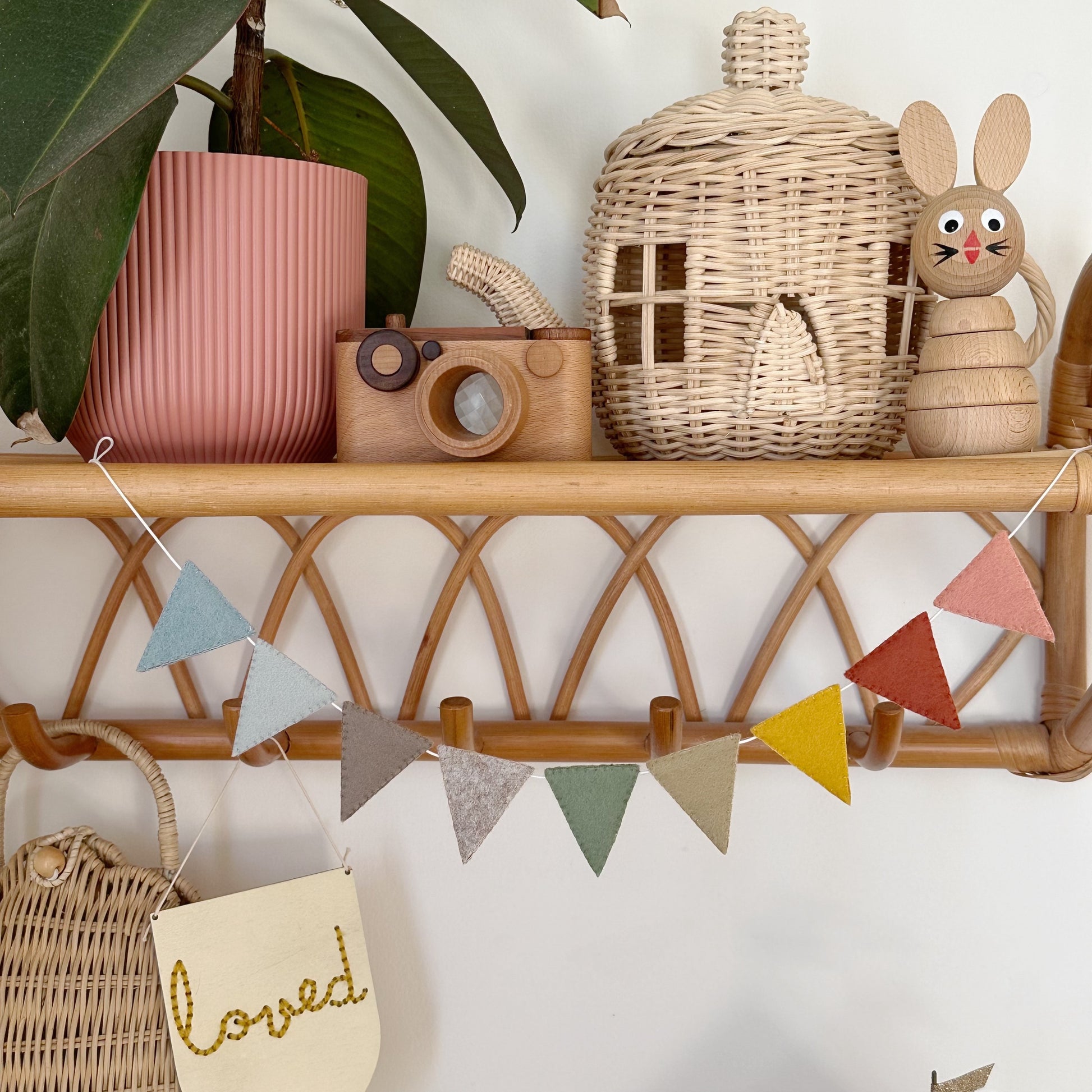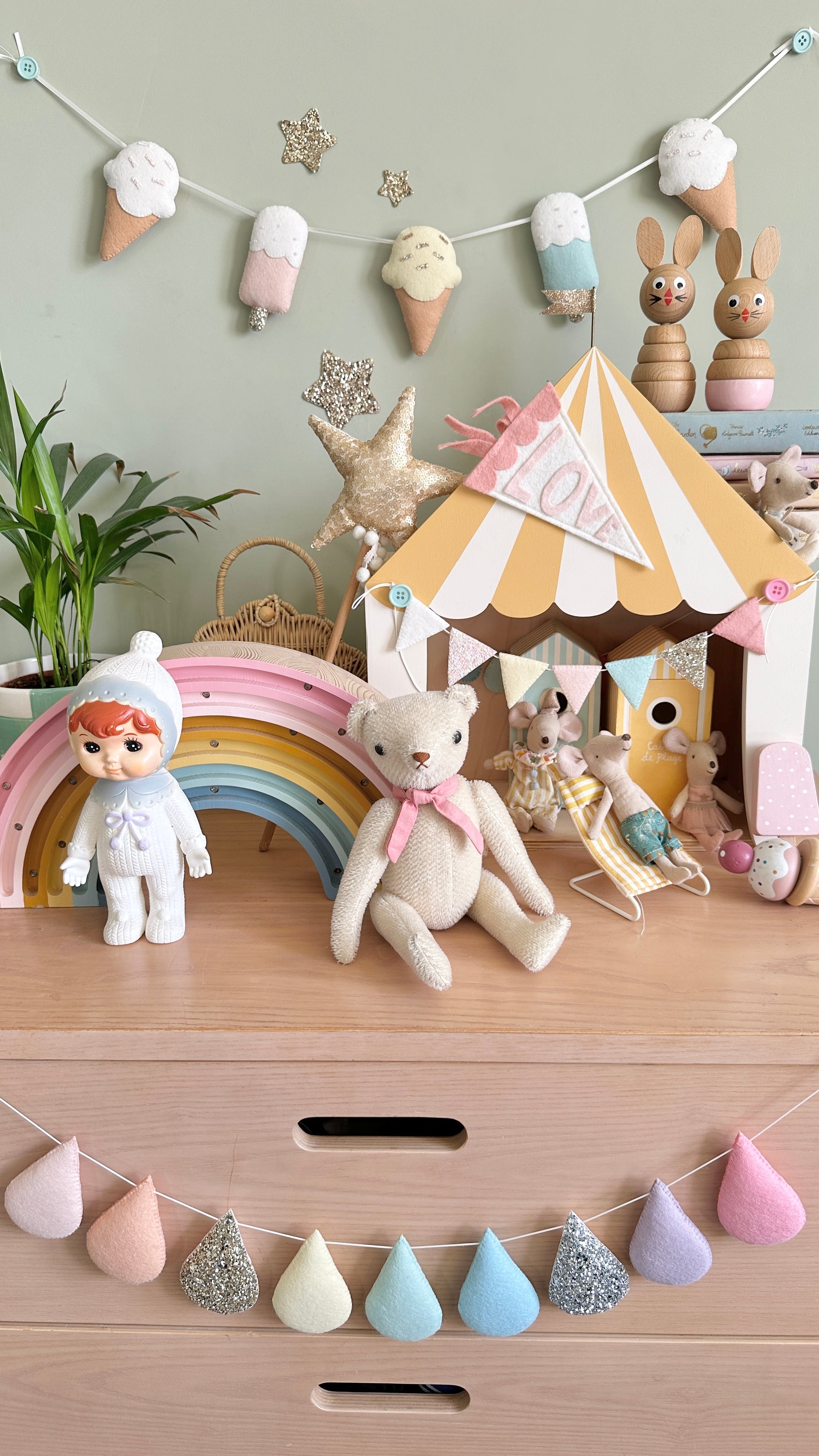Dinky bunting garland, perfect for adorning dolls houses, bookshelves and mini spaces!